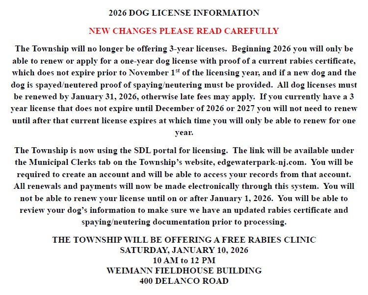 A request for government records can be made through the Open Public Records Request Act "OPRA", which provides for the public to access government records. Requests should be in writing to the custodian of a government record, and the requestor must clearly identify the government record. Requests for information or requests that ask questions are NOT valid OPRA requests. The Township of Edgewater Park is now using the SDL Portal to process records requests. You will be required to create an account and password and then you will be able submit a request or search for information. You can access the SDL Portal by clicking the link below or you can complete the OPRA form under the forms tab and submit to Patricia Clayton, Township Clerk at pclayton@edgewaterpark-nj.com