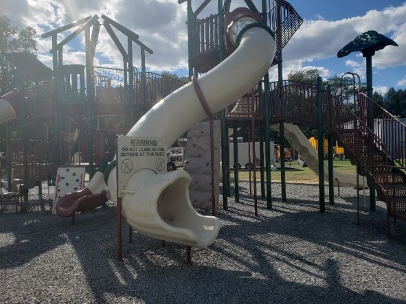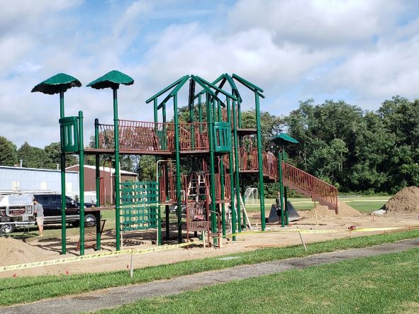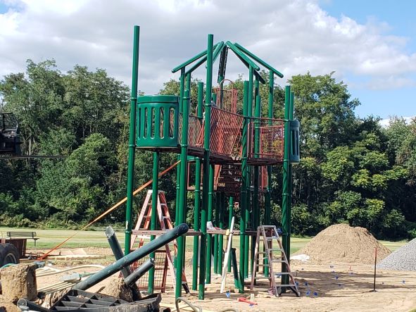"Unfortunately," according to Public Works Superintendent Jim Bernard, "the roof panels of the playground are on back-order, and we will not be able to open the playground until they are on. Everyone is hoping they come in next week...!"