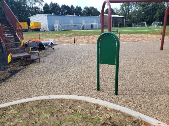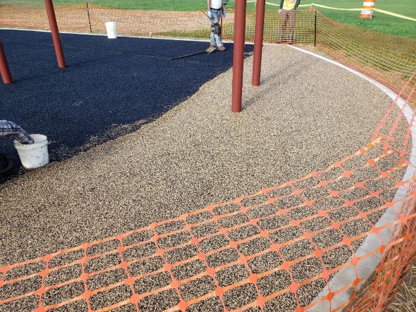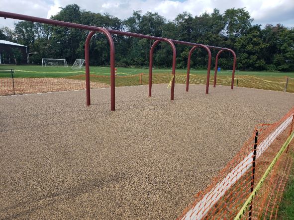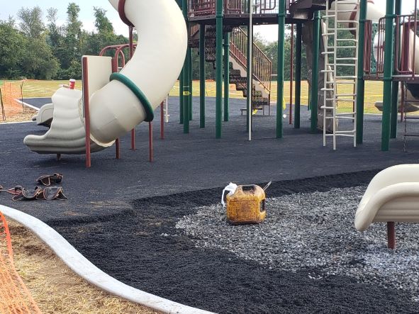 But PLEASE... no playing on the equipment or walking on the surfaces until all the layers of rubber are poured and it is finished!