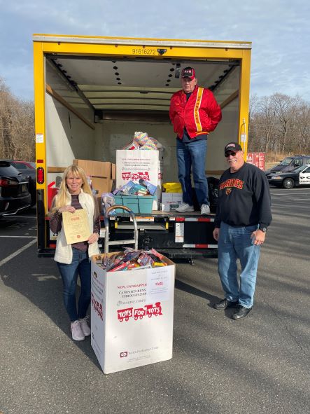 Ms. Karen Bass of Bordentown, and her nephew Michael Coleman, contacted their friend EP Detective John Harris when they were closing their specialty toy store in Clementon, NJ, for advice on what to do with thousands of small toys and books they still had. This resulted in a generous donation for Edgewater Park’s Toys for Tots campaign!