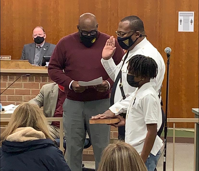 Mayor Bill Belgard swore-in Sergeant Charles Ryder, Jr.,