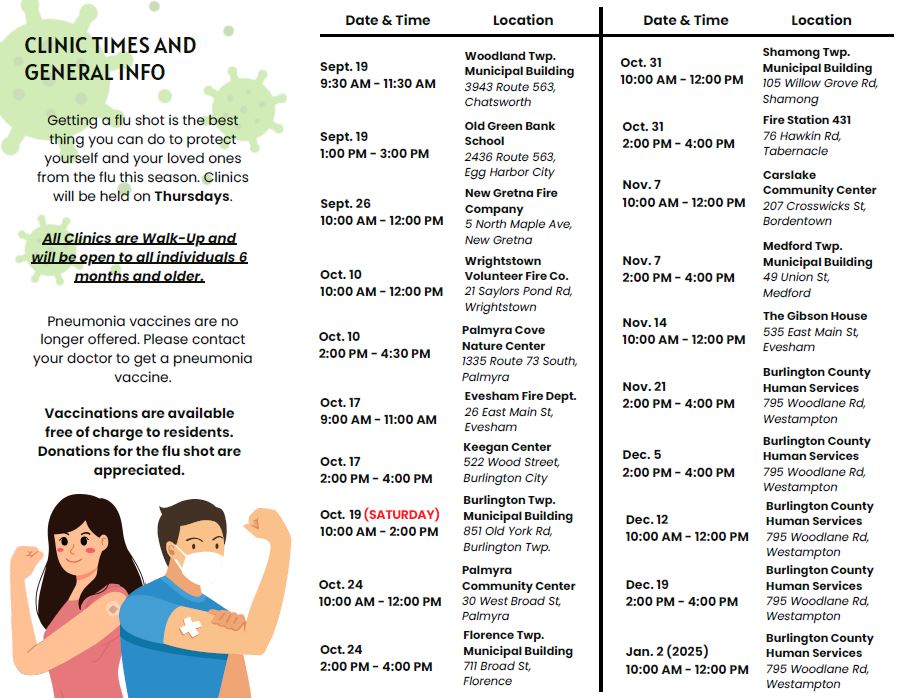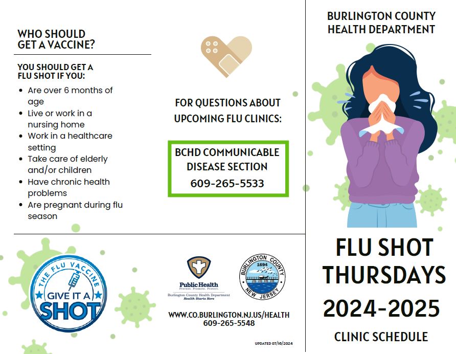 Burlington County Health Department announces Flu Shot Thursdays 2024-2025 Clinic Schedule:
