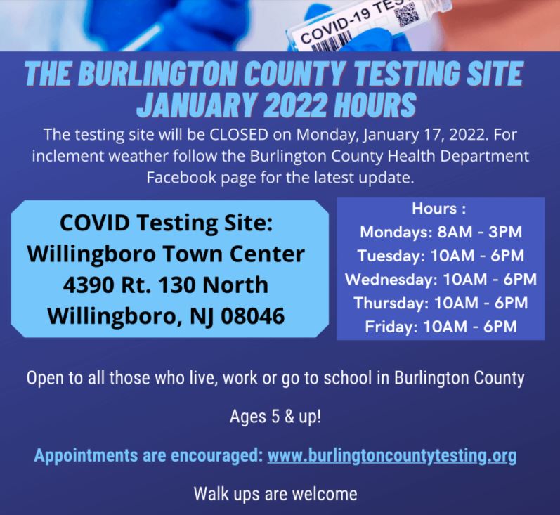 Click here for the updated Burlington County COVID-19 Testing Sites information, as of 24 February 2022.
