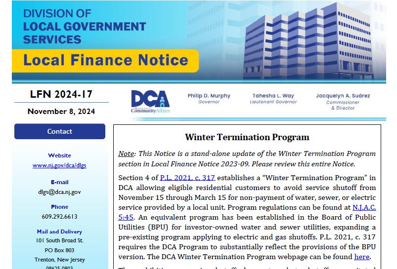 Low-Income Household Water Assistance Program & Winter Termination Program; Mandatory Local Government Participation and Residential Ratepayer Notice from the DCA: