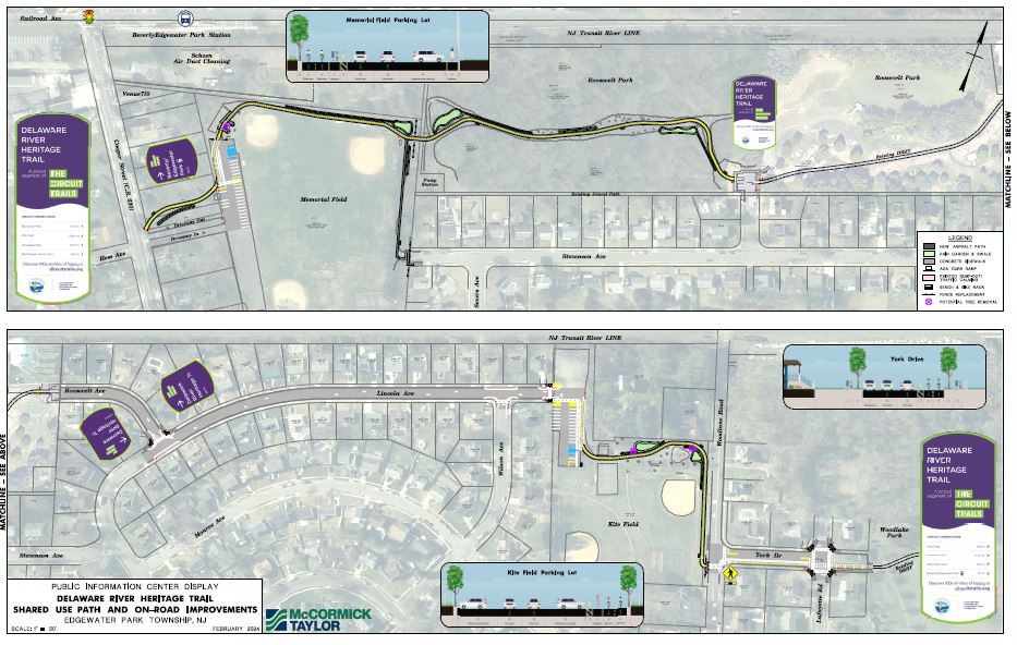 Below is a map of the Heritage Trail that goes through Edgewater Park Township, along the River Line, which was paid for with Federal grant money and which aligns with the State and County efforts to connect trails throughout New Jersey. Click here (or the picture below) to download the pdf file of this Delaware River Heritage Trail map.