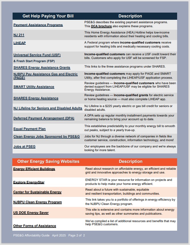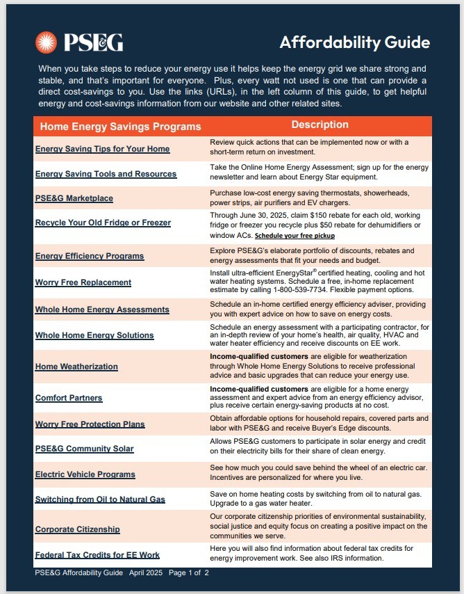 Below is the 2025 PSE&G Affordability Guide Rev 2.2