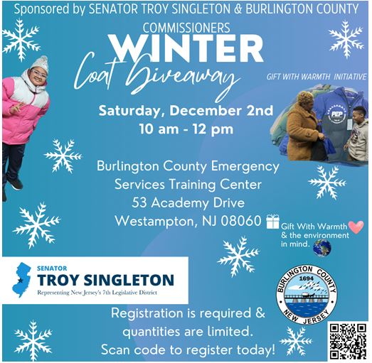 Senator Troy Singleton & Burlington County Commissioners’ Winter Coat Giveaway!